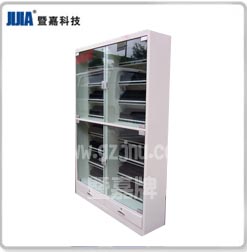 智能光盤柜 智能光盤柜就是在光盤柜的基礎(chǔ)上加安裝了單片機(jī)控制器,LED燈,通過計算機(jī)控制LED燈發(fā)光定位的光盤管理設(shè)備。通過專門的軟件進(jìn)行管理,并與電腦連接使用的光盤柜。此種光盤柜為現(xiàn)今光盤柜的發(fā)展趨勢,眾多圖書館、檔案館都采用智能光盤存儲柜。