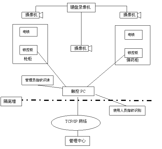 此槍彈柜系統(tǒng)不僅可作為一個(gè)單一的系統(tǒng)存在,并且還可以向其他系統(tǒng)傳送信息,通過(guò)網(wǎng)絡(luò)可以實(shí)現(xiàn)數(shù)據(jù)共享和數(shù)據(jù)傳輸,首長(zhǎng)或管理人員可以在任意網(wǎng)絡(luò)接點(diǎn)上檢查槍支或彈藥當(dāng)時(shí)的在位情況,并可以閱覽保管人員的工作狀況,還可以查詢以往的歷史數(shù)據(jù)并用多種方式輸出。